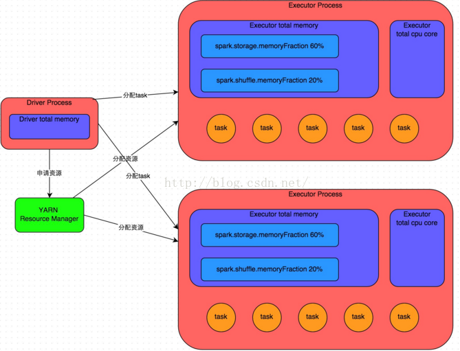 参数说明:该参数用于设置shuffle过程中一个task拉取到上个stage的task的输出后,进行聚合操作时能够使用的Executor内存的比例,默认是0.2。也就是说,Executor默认只有20%的内存用来进行该操作。shuffle操作在进行聚合时,如果发现使用的内存超出了这个20%的限制,那么多余的数据就会溢写到磁盘文件中去,此时就会极大地降低性能。