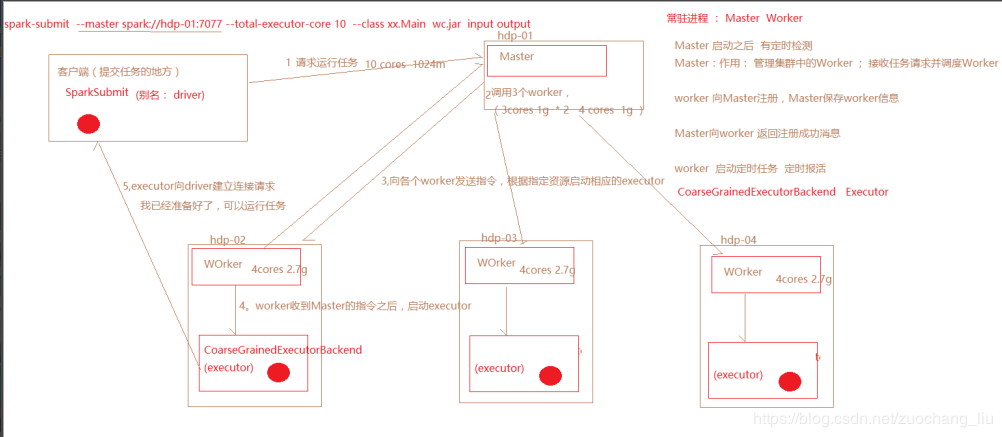 spark-submit命令执行时,会根据master地址去向 Master发送请求。