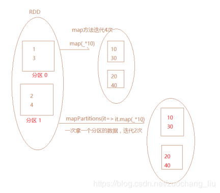 foreachParititon 每次迭代一个分区,foreach每次迭代一个元素。