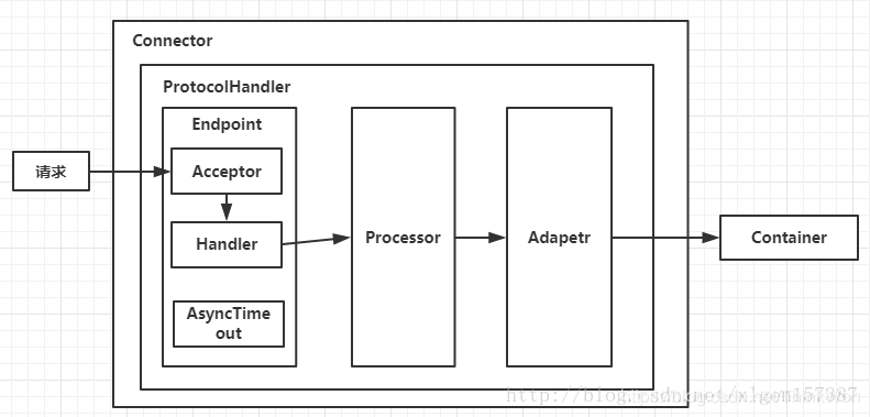 其中ProtocolHandler由包含了三个部件:Endpoint、Processor、Adapter。