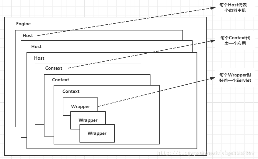 • Engine、Host、Context、Wrapper相关的概念关系;